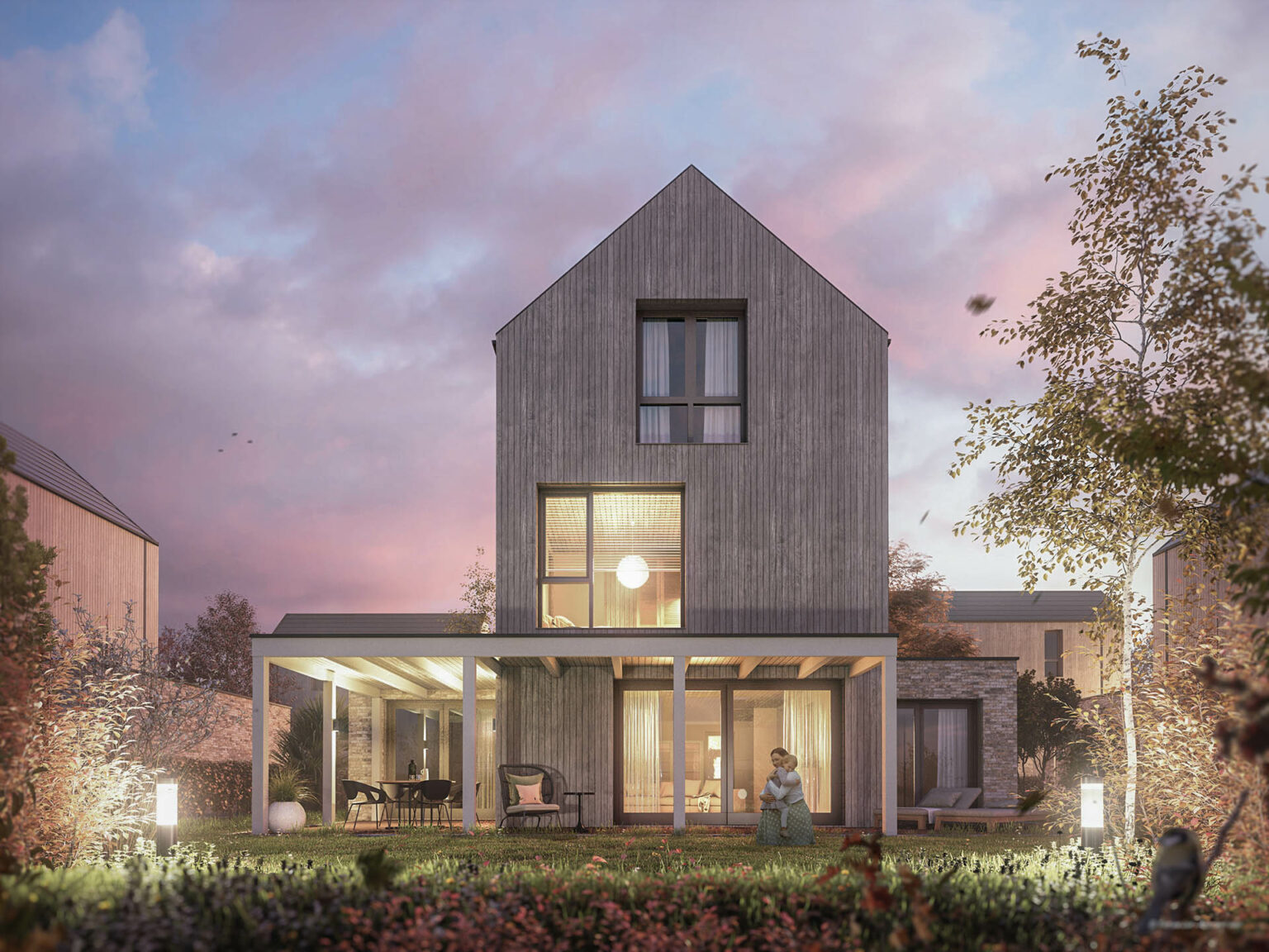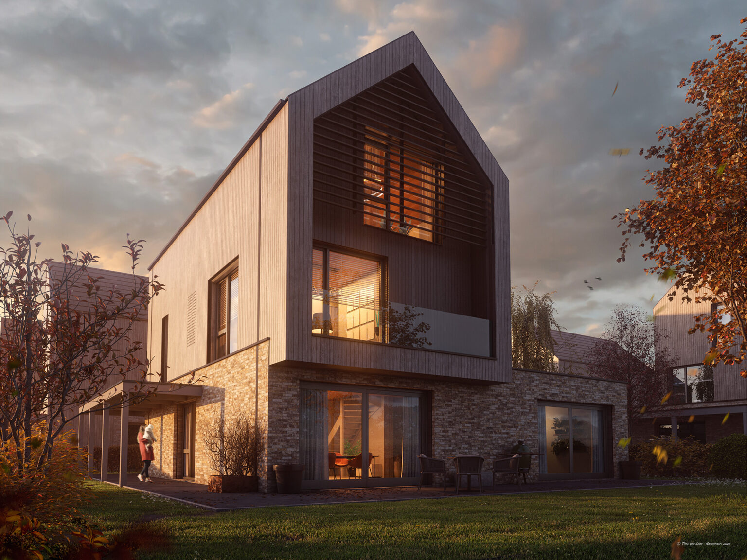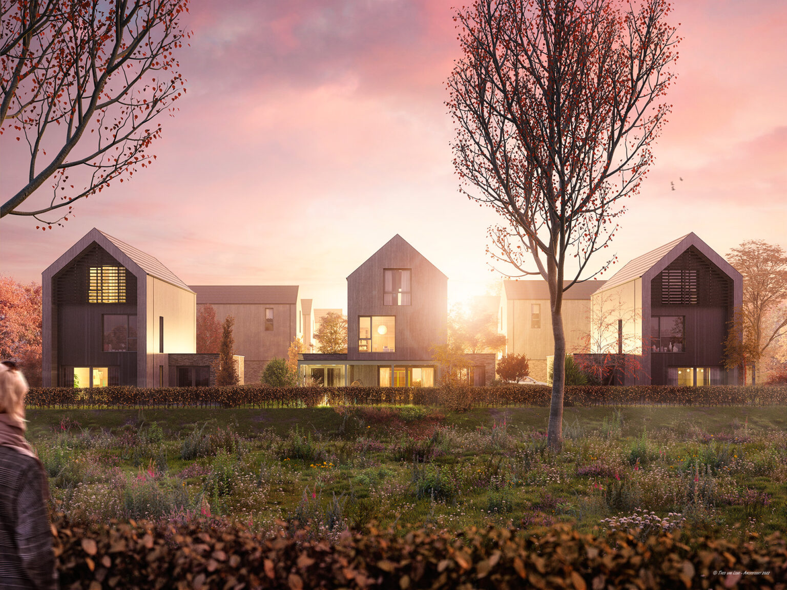 In opdracht van VanWonen hebben wij 17 zeer energiezuinige woningen ontworpen, gelegen op de laatste twee terpen in Stadshagen. Het casco van de woningen is, in samenwerking met Ekowood Houses, volledig uitgevoerd in hout. Daarbij zijn de toegepaste materialen waar mogelijk herbruikbaar. Zo is de metselwerkplint bijvoorbeeld uitgevoerd in ClickBrick.